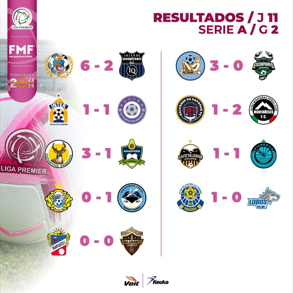 Al cierre de la jornada 11 la clasificación nos dejó como líder a Racing con 25 puntos, en segundo lugar a Petroleros con 24 puntos mismos que tiene Deportiva Venados.