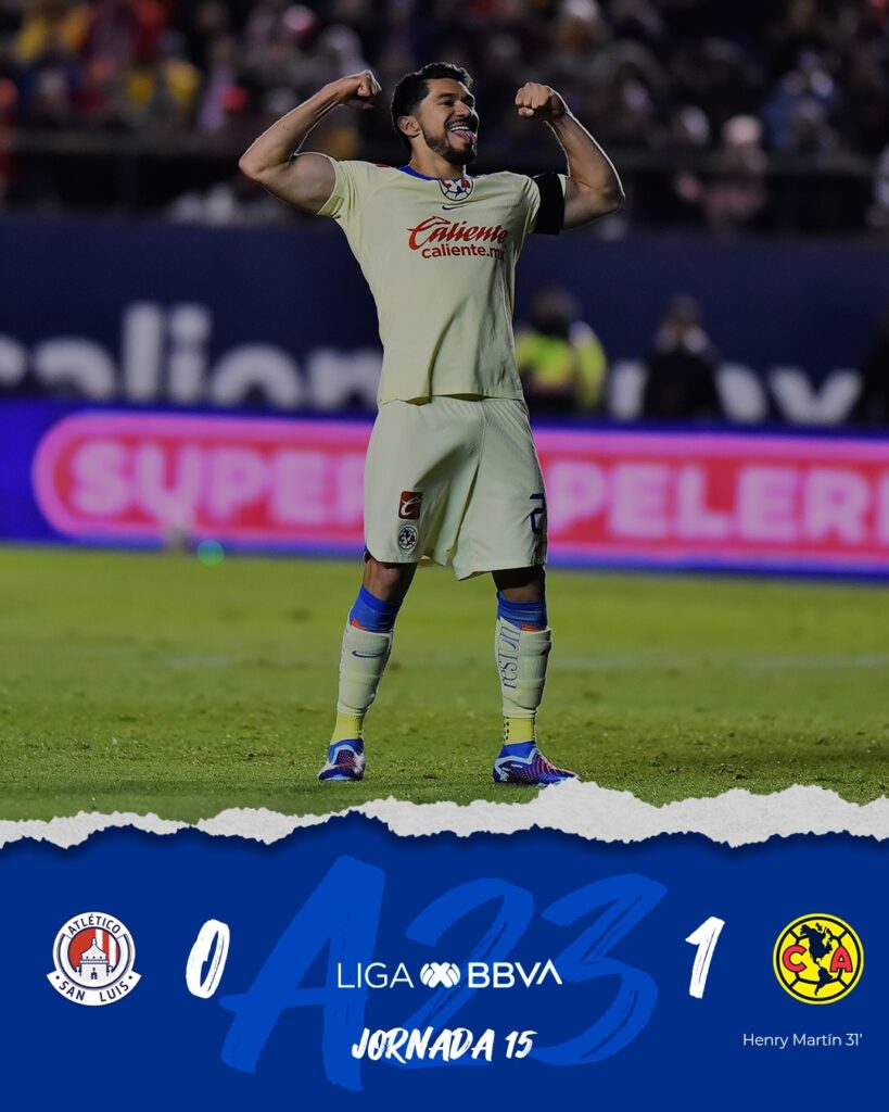 El América en calidad de visitante derrotó 1 a 0 al Atlético San Luis y se afianza como líder de la liga BBVA Mx.